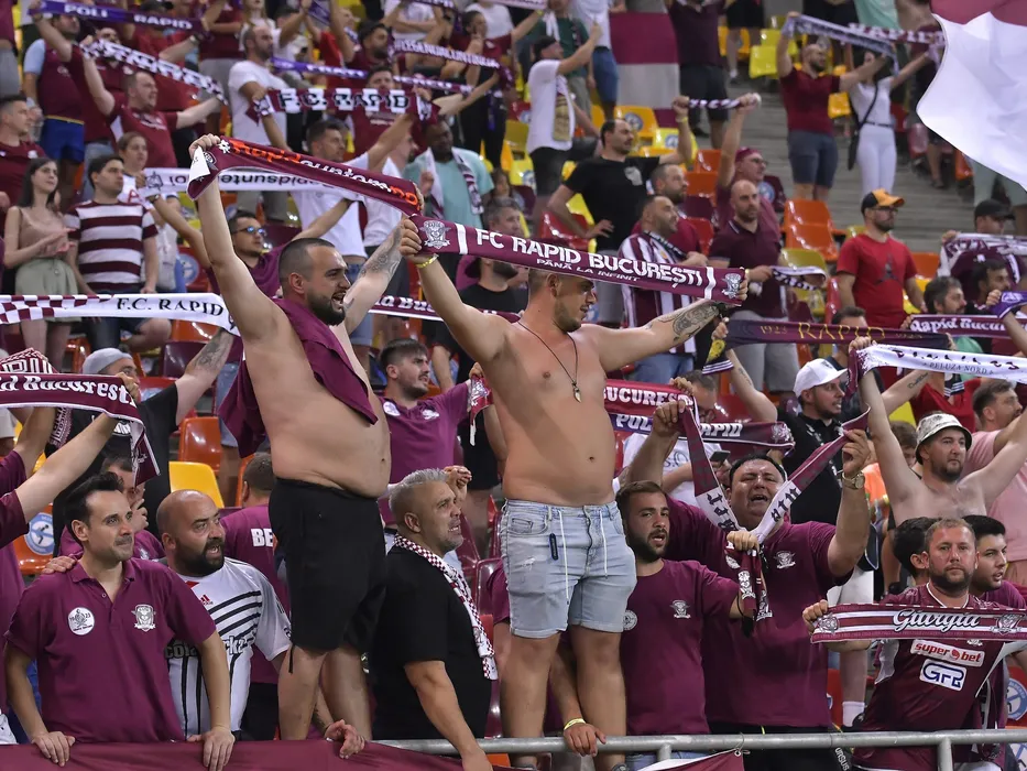 Suporterii rapidisti asista la meciul de fotbal dintre Rapid Bucuresti si Farul Constanta, contand pentru Liga 1 Casa Pariurilor, desfasurat pe Arena Nationala din Bucuresti, vineri 30 iulie 2021. © FOTO:Razvan Pasarica/SPORT PICTURES