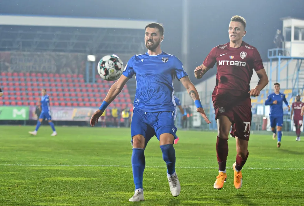 Ionut Balaur si Jakub Vojtus in meciul de fotbal dintre FC Voluntari si CFR Cluj, din etapa a VIII-a a Ligii 1, disputat pe stadionul Anghel Iordanescu din Voluntari, duminica, 25 octombrie 2020. © FOTO:George Ilinca / Sport Picture