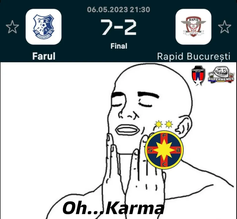 Rapid, ținta ironiilor după 2-7 cu Farul: „În cinstea zilei de 7 mai 1986!”. Cele mai tari glume după umilința suferită de giuleșteni la Ovidiu