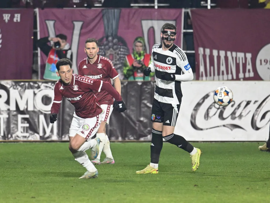 Olimpiu Vasile Morutan, Phillipe Razvan Onea si Dorin Marian Codrea in meciul de fotbal dintre Rapid Bucuresti si Universitatea Cluj, din cadrul Superligii Superbet, desfasurat pe Superbet Arena-Giulesti din Bucuresti, sambata 31 ianuarie 2026. © FOTO:Razvan Pasarica/SPORT PICTURES