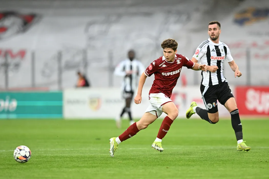 Rares Mihai Pop si Dorin Marian Codrea in meciul de fotbal dintre FC Universitatea Cluj si FC Rapid 1923 Bucuresti, contand pentru Superliga Superbet Play-Off, desfasurat pe Stadionul Cluj Arena din Cluj-Napoca, sambata 24 mai 2025. © FOTO: Flaviu Buboi/SPORT PICTURES