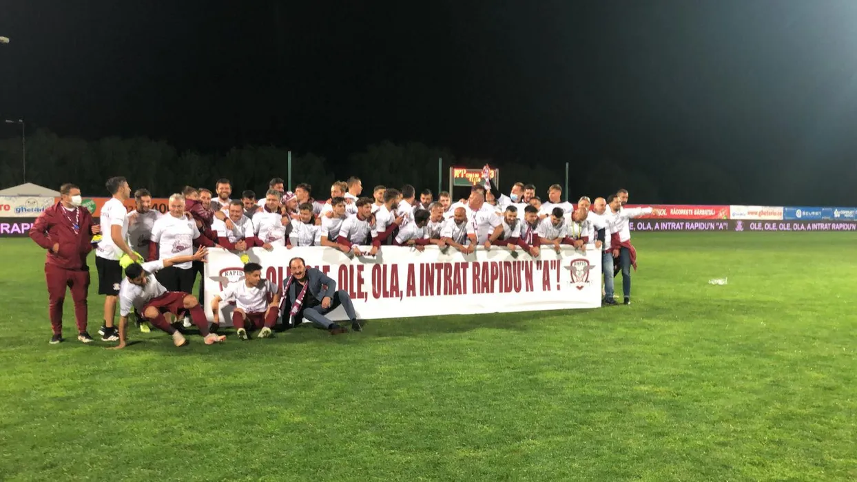 Sărbătoare la Buftea! Rapidiștii, show alături de suporteri după calificarea în Liga 1 + Jucătorii i-au cântat lui Mihai Iosif și l-au cărat pe brațe | VIDEO