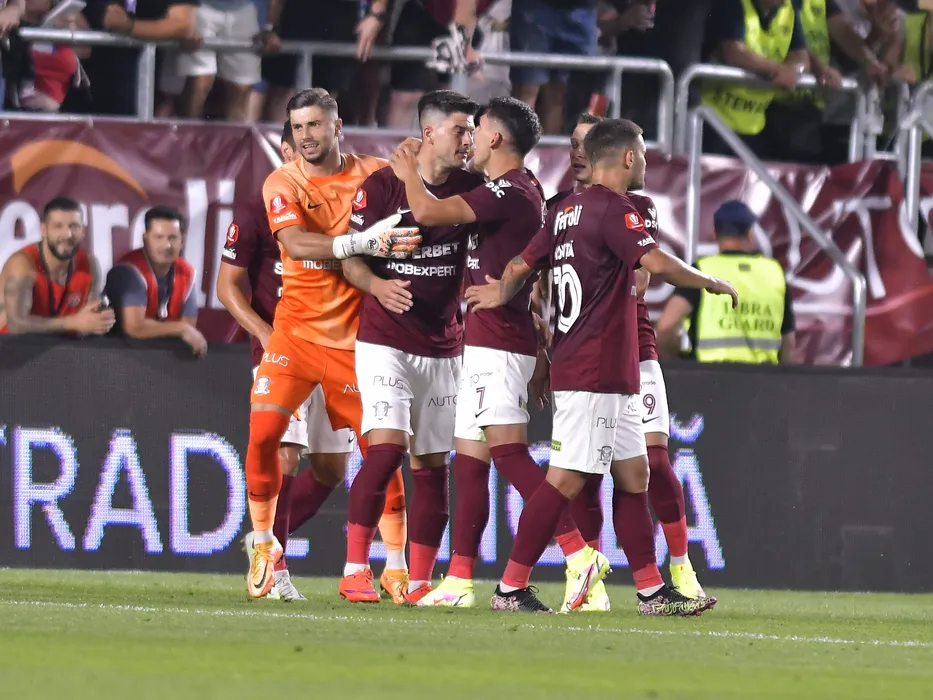 Bucurie a fotbalistilor rapidisti dupa un gol marcat cu Horatiu Alexandru Moldovan, Cristian Ionut Sapunaru, Alexandru Ionita, Valentin Ionut Costache si Antonio Valentin Sefer in meciul de fotbal dintre Rapid Bucuresti si FCSB, contand pentru Superliga Superbet, desfasurat pe Stadionul Rapid Giulesti din Bucuresti, duminica 24 iulie 2022. © FOTO:Razvan Pasarica/SPORT PICTURES