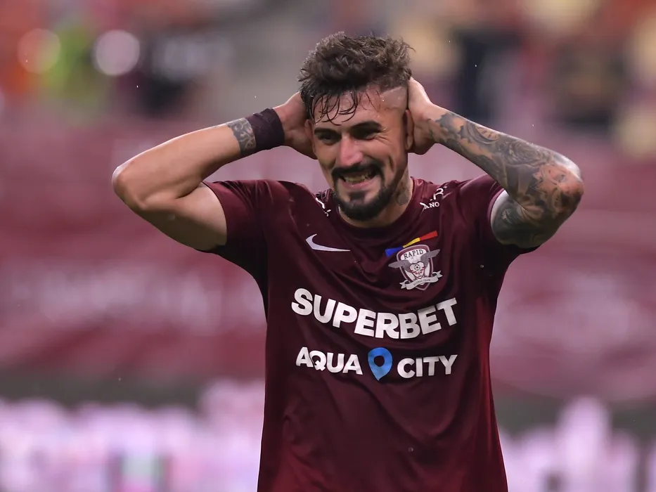 Alexandru Cristian Albu suparat dupa o ratare in meciul de fotbal dintre Rapid Bucuresti si Gaz Metan Medias, contand pentru Liga 1 Casa Pariurilor, desfasurat pe Arena Nationala din Bucuresti, vineri 17 septembrie 2021. © FOTO:Razvan Pasarica/SPORT PICTURES