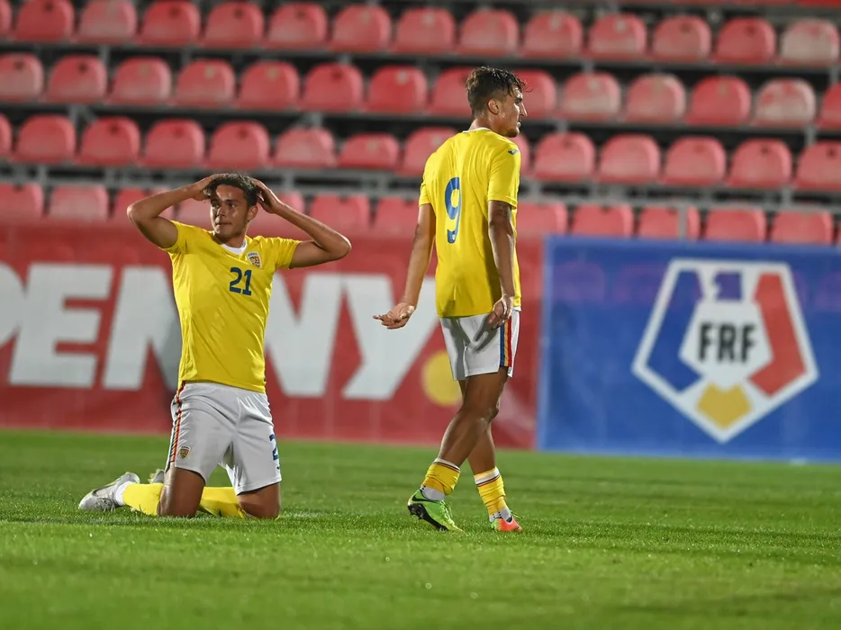 Atanas TricÄ suparat dupa o ratare alaturi de Rares Burnete in meciul de fotbal dintre Romania U19 si Lituania U19, din cadrul turneului de calificare pentru Campionatul European 2023, desfasurat pe Stadionul Anghel Iordanescu din Voluntari, sambata 24 septembrie 2022. Voluntari *** Atanas Trica upset after a miss with Rares Burnete in the football match between Romania U19 and Lithuania U19, in the qualifying tournament for the European Championship 2023, held at the Anghel Iordanescu Stadium in Voluntari, Saturday 24 September 2022 Voluntari Copyright: xRazvanxPasarica/SPORTxPICTURESx,Image: 725984041, License: Rights-managed, Restrictions: , Model Release: no