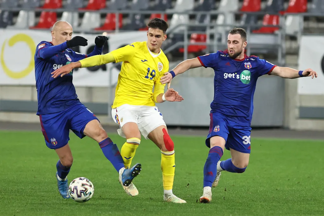 Rares Ilie (C) joaca in partida amicala de fotbal dintre Steaua si reprezentativa nationala de tineret U21 a Romaniei, joi, 17 noiembrie 2022, la Bucuresti. GEORGE FLUSTER / MEDIAFAX FOTO