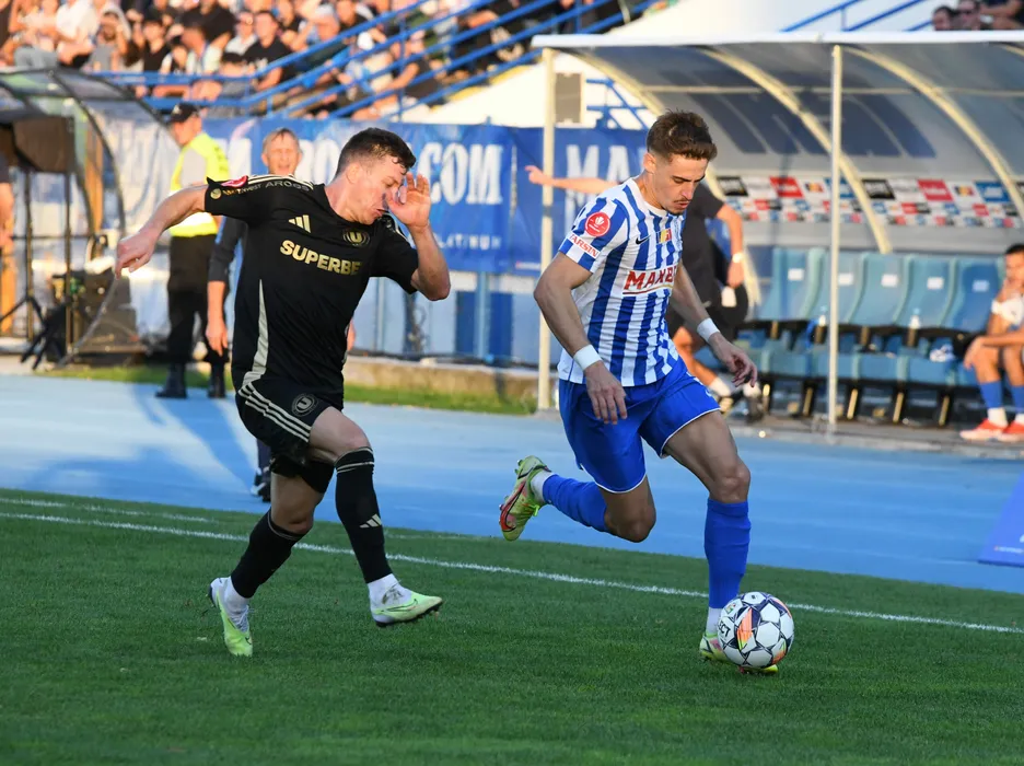 Rareș Sebastian Ispas și Vadim Rață în meciul de fotbal dintre Poli Iași si Universitatea Cluj, contând pentru SuperLiga Superbet, desfășurat pe Stadionul Emil Alexandrescu din Iași, sâmbătă 28 septembrie 2024. © FOTO: Tudi/SPORT PICTURES