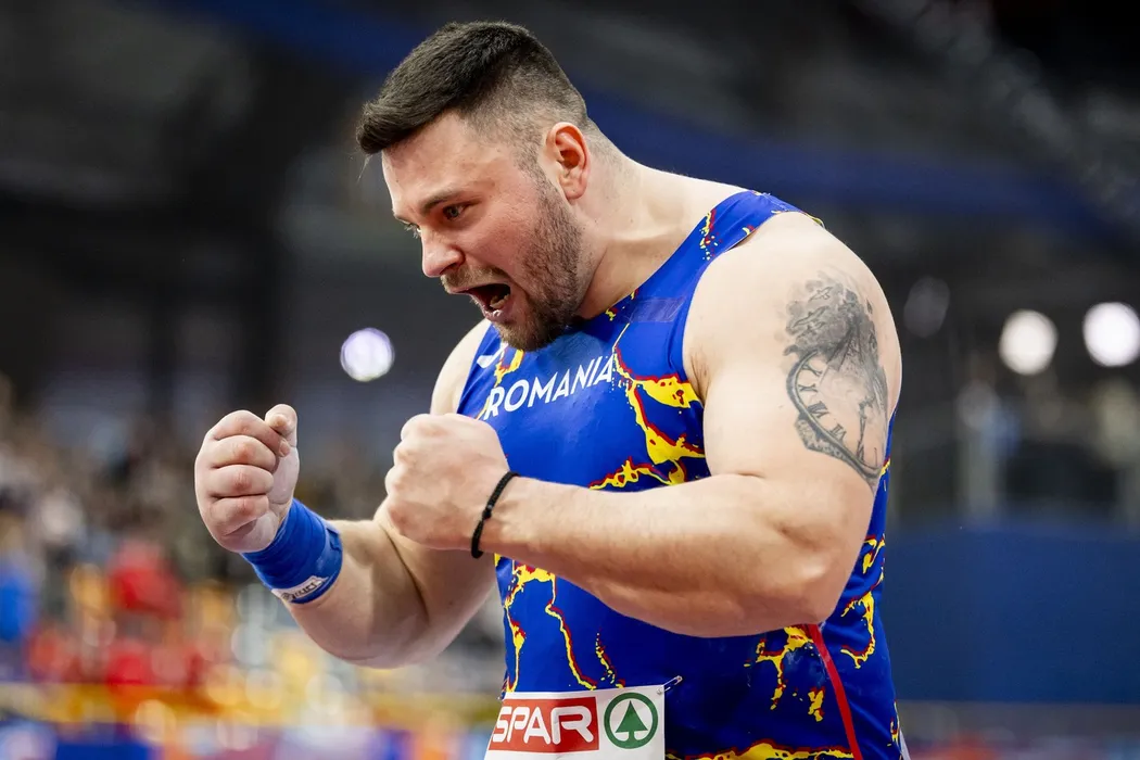 APELDOORN - Andrei Rares Toader (ROU) during the final of the men's shot put on the fourth day of the European Indoor Athletics Championships in Omnisport Apeldoorn.