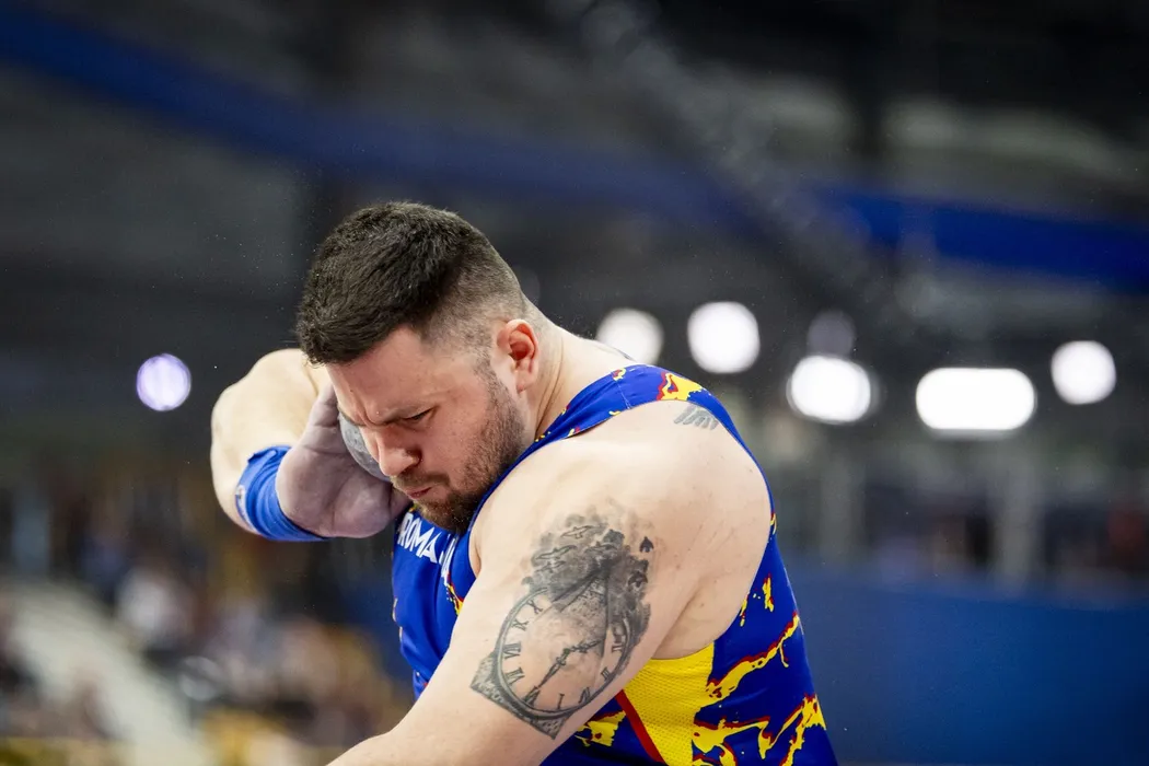 APELDOORN - Andrei Rares Toader (ROU) during the final of the men's shot put on the fourth day of the European Indoor Athletics Championships in Omnisport Apeldoorn.