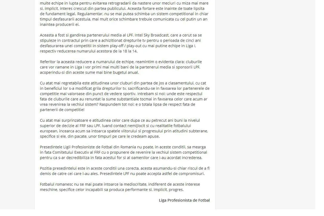 Răscoală în Liga 1, Iorgulescu încolțit: 10 cluburi vor să nu mai retrogradeze 6 echipe la finalul sezonului. Șeful LPF vorbește despre „interese meschine” și riscă să fie demis. Ce spune Burleanu