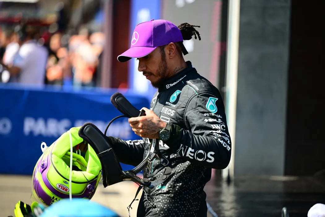 Lewis Hamilton of Mercedes-AMG Petronas F1 Team is celebrating his 2nd place during the race of the Belgian GP, the 14th race of the Formula 1 World Championship, in Spa-Francorchamps Circuit, Stavelot, Vellonia, Belgium, on July 28, 2024.