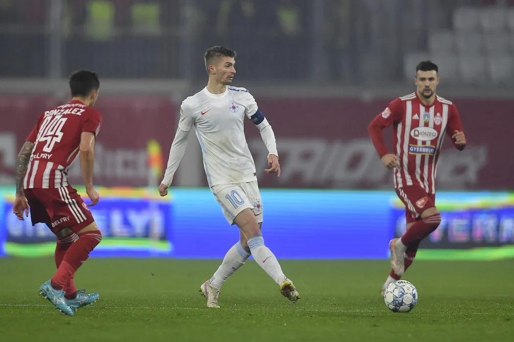 Florin Tanase (C), de la FCSB, suteaza in timpul meciului de fotbal contra echipei Sepsi OSK din etapa a XXI-a a Ligii 1, disputat pe stadionul Municipal din Sfantu Gheorghe, duminica, 19 decembrie 2021. ALEX NICODIM / MEDIAFAX FOTO