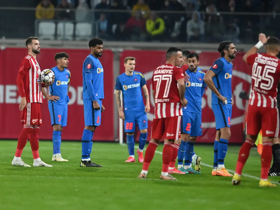 Fotbalistii celor doua echipe Alexandru Tudorie, Sylas Laouari Edjouma Malcom, Valentin Cretu si Andrea Compagno in meciul de fotbal dintre Sepsi OSK Sfantu Gheorghe si FCSB, contand pentru Superliga Superbet, desfasurat pe Sepsi Arena din Sfantu Gheorghe, luni 24 octombrie 2022. © FOTO:Razvan Pasarica/SPORT PICTURES