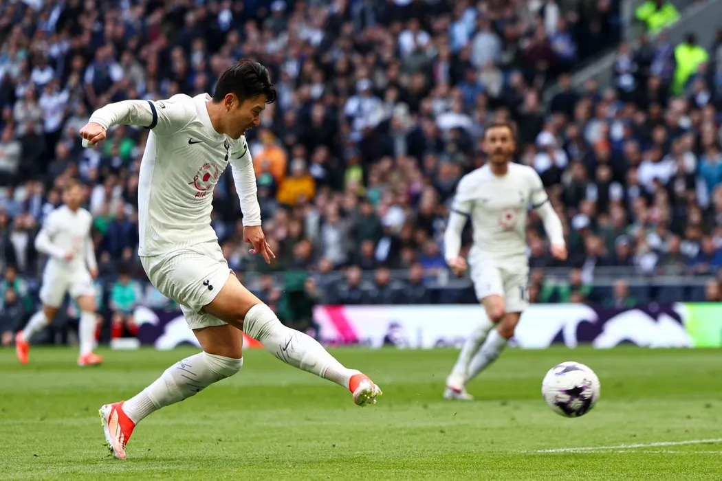 Son Heung-Min of Tottenham Hotspur takes a shot on goal