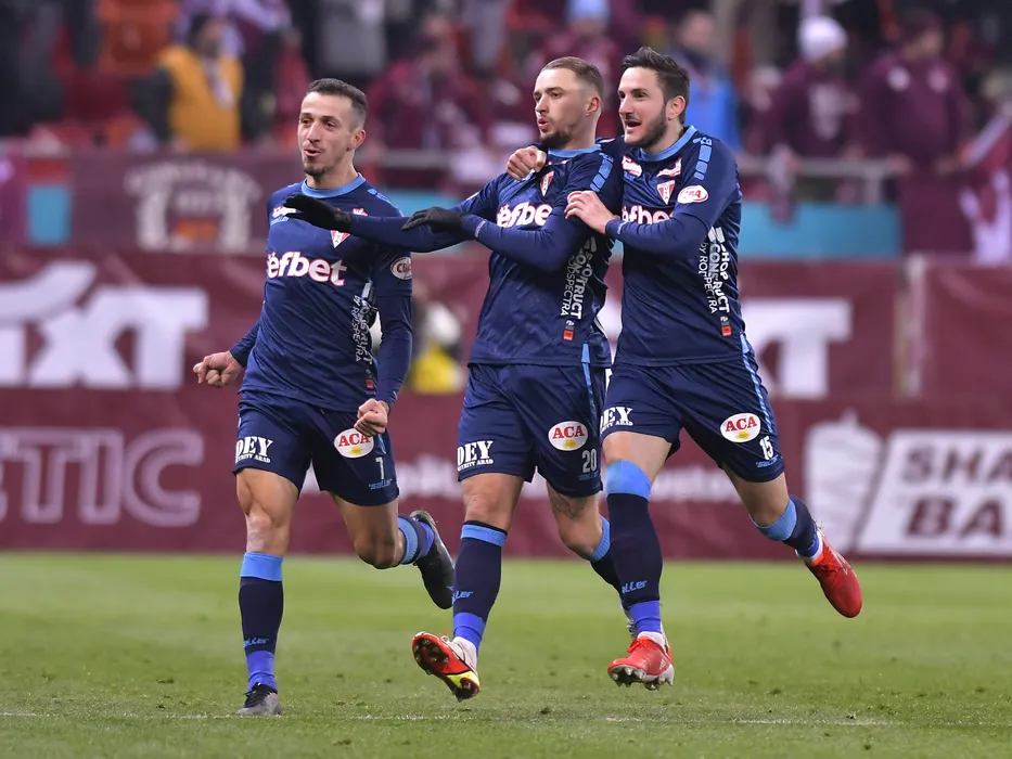 Cornelis Petrus Ubbink se bucura dupa un gol marcat alaturi de Roger Junio Rodrigues Figueira si Marko Vukcevic in meciul de fotbal dintre Rapid Bucuresti si UTA Arad, contand pentru Liga 1 Casa Pariurilor, desfasurat pe Arena Nationala din Bucuresti, sambata 29 ianuarie 2022. © FOTO:Razvan Pasarica/SPORT PICTURES