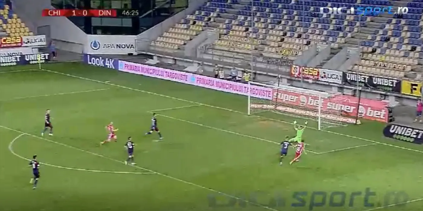 Ratări monumentale în meciul Chindia Târgoviște – Dinamo! Deian Sorescu și Blaise Yameogo i-au făcut pe toți să își pună mâinile în cap | VIDEO