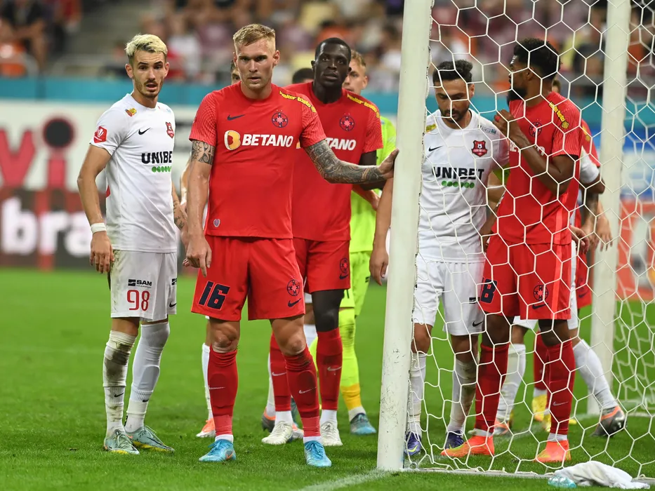 Raul Marian Oprut, Joonas Tamm, Joyskim Aurelien Dawa Tchakonte, Ionut Stoica si Sylas Laouari Edjouma Malcom in meciul de fotbal dintre FCSB si FC Hermannstadt, contand pentru Superliga Superbet, desfasurat pe Arena Nationala din Bucuresti, duminica 28 august 2022. © FOTO:Razvan Pasarica/SPORT PICTURES