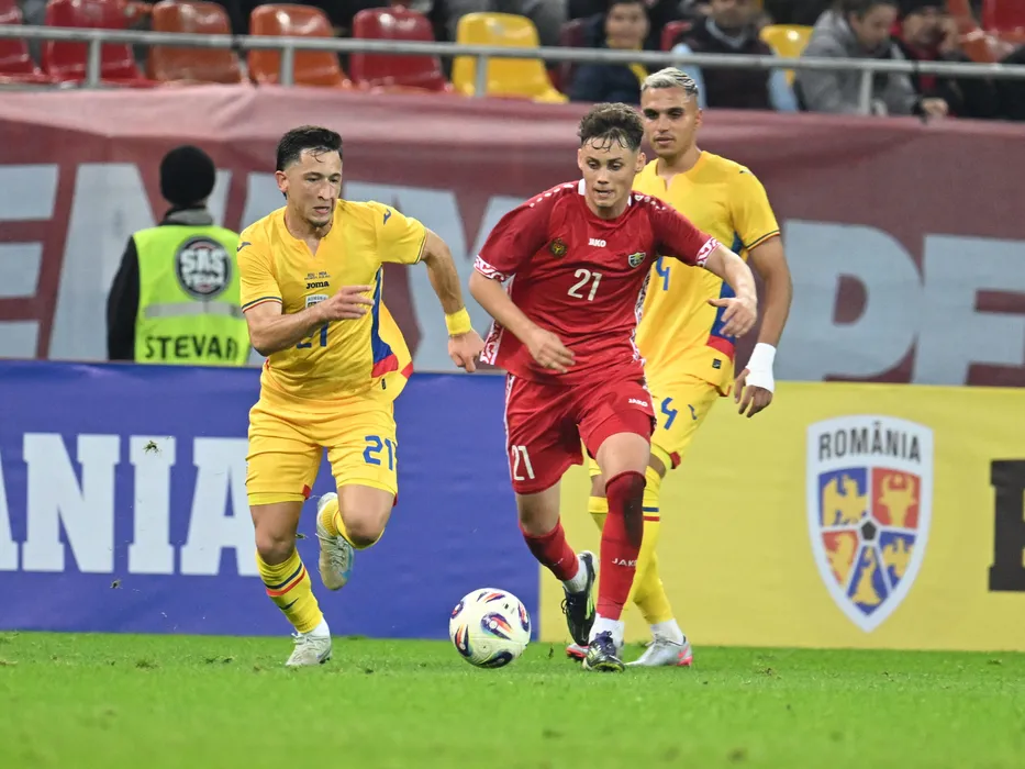 Olimpiu Morutan, Sergiu Perciun si Cristian Manea in meciul amical de fotbal dintre Romania si Moldova, desfasurat pe Arena Nationala din Bucuresti, joi 9 octombrie 2025. © FOTO:Razvan Pasarica/SPORT PICTURES