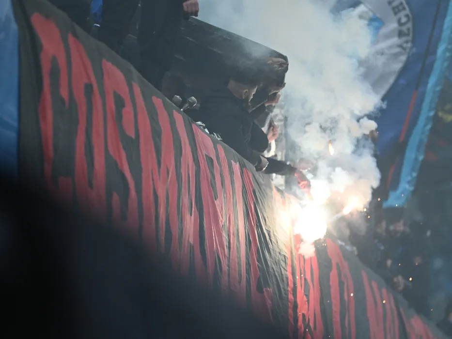 Fumigene in Peluza Nord craioveana la meciul de fotbal dintre Universitatea Craiova si FC U Craiova, contand pentru Superliga Superbet, desfasurat pe Stadionul Ion Oblemenco din Craiova, sambata 3 decembrie 2022. © FOTO:Razvan Pasarica/SPORT PICTURES