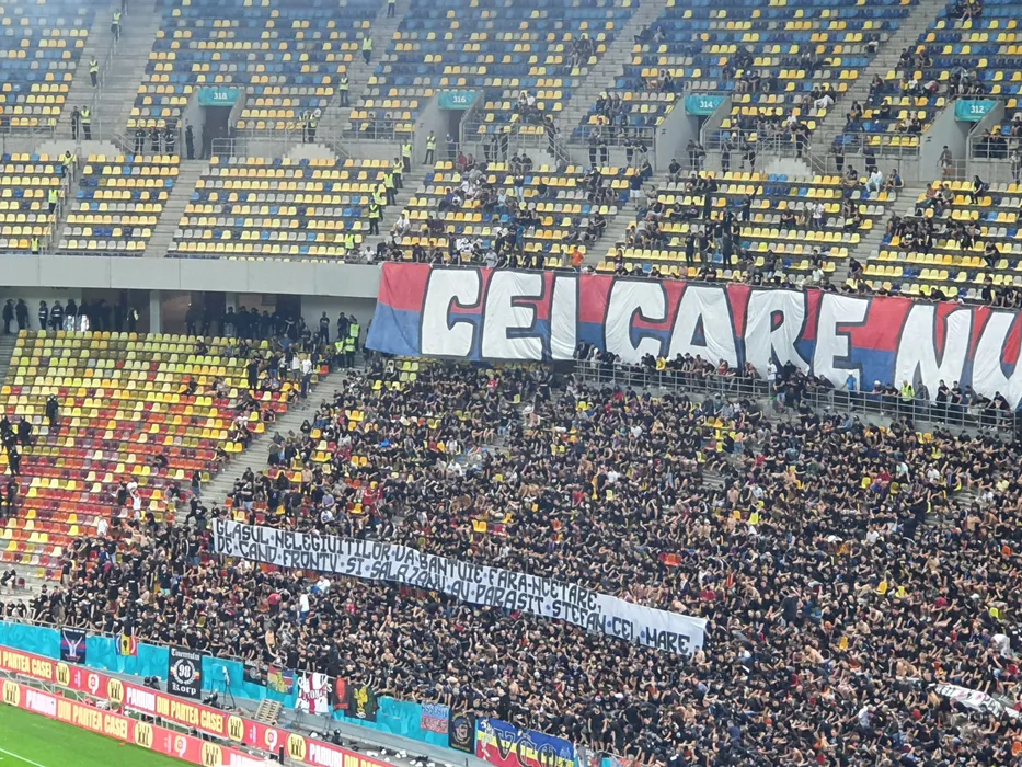 Războiul bannerelor la Dinamo – CSA Steaua! Ultrașii celor două formații și-au aruncat mesaje grele pe Arena Națională: „De la Gigi sau Talpan tot mai pică… câte-un ban””