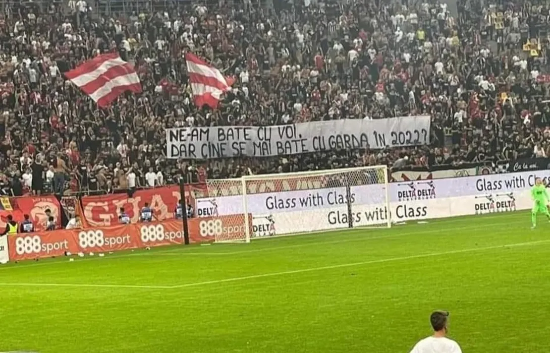 Războiul bannerelor la Dinamo – CSA Steaua! Ultrașii celor două formații și-au aruncat mesaje grele pe Arena Națională: „De la Gigi sau Talpan tot mai pică… câte-un ban””