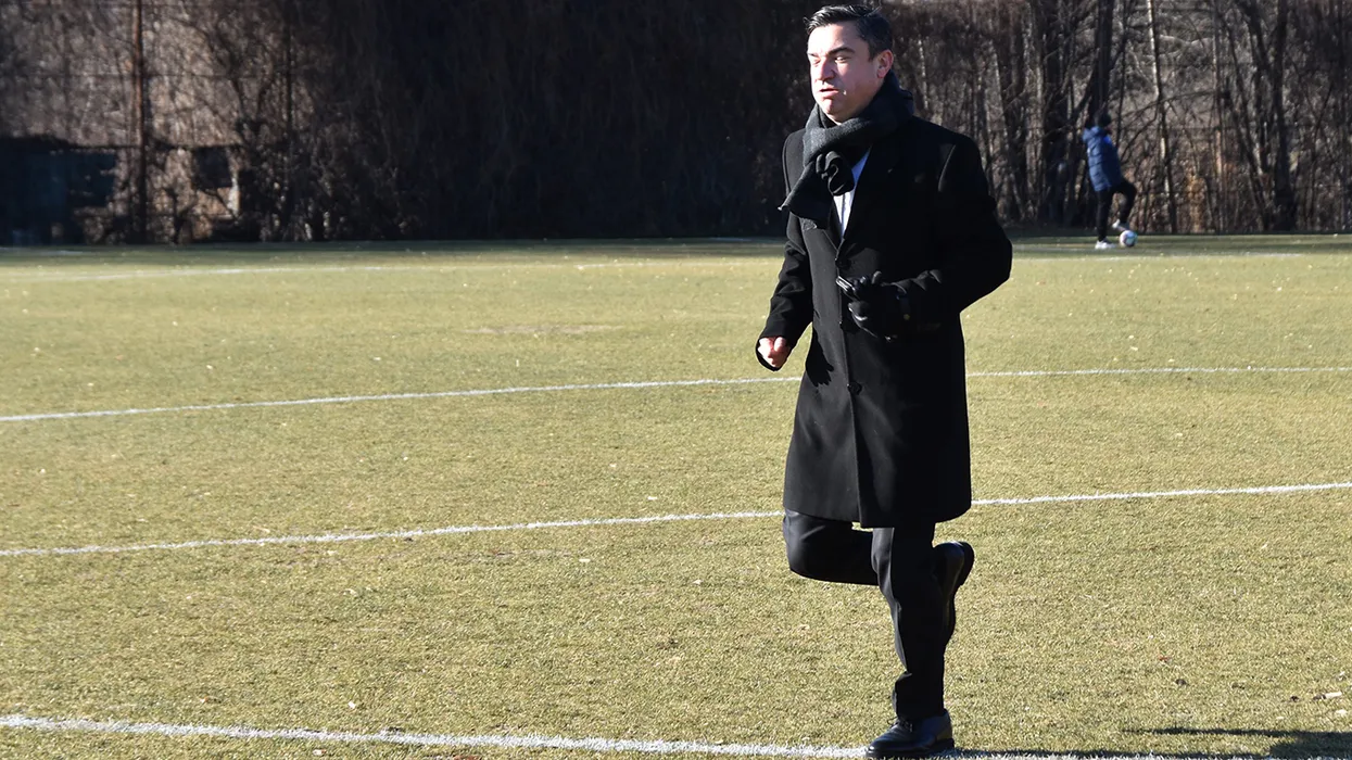 Primarul Mihai Chirica alearga pe terenul de fotbal pe care jucatorii echipei Politehnica Iasi au participat la primul antrenament al anului, miercuri, 12 ianuarie 2022, la Iasi. DRAGOS PASCANEANU / MEDIAFAX FOTO