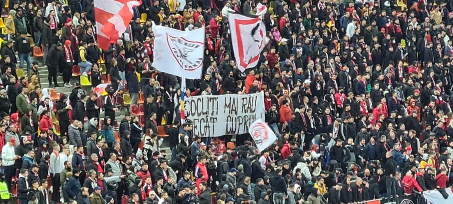 Războiul mesajelor în tribunele Arenei Naționale la derby-ul Rapid – Dinamo! „Câinii” au ripostat dur la scenografia giuleștenilor: „Când doctorul vă recomandă fier / Goliți orice șantier” FOTO