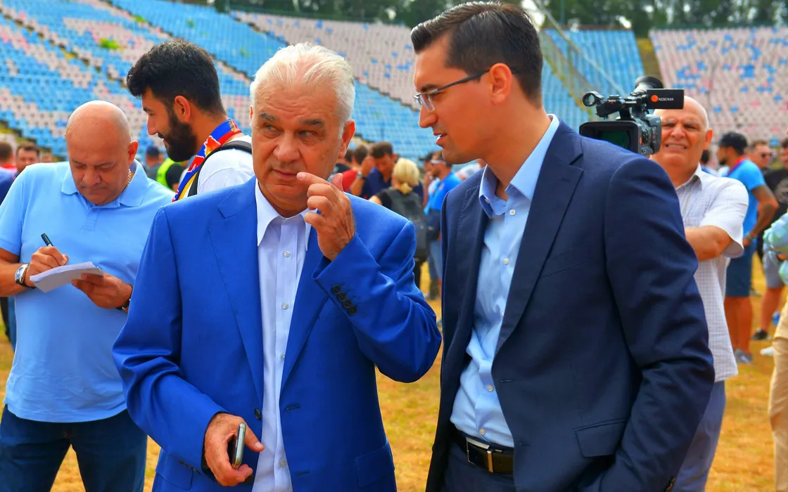 Anghel Iordanescu si Razvan Burleanu in cadrul evenimentului Templul fotbalului-Istoria continua, desfasurat la stadionul Ghencea-Steaua din Bucuresti, marti 28 august 2018. © FOTO Razvan Pasarica/SPORT PICTURES