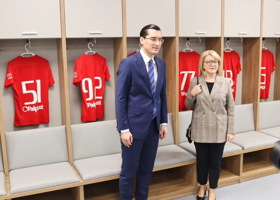 Stadionul Municipal din Sibiu a fost inaugurat in prezenta mai multor copii de la grupele de juniori ale celor de la Hermannstadt care au schimbat cateva pase iar primarul Astrid Fodor a sustinut o conferinta de presa in compania presedintelui FRF Razvan Burleanu, marti 06 decembrie 2022. © FOTO: Macrea Valentin/SPORT PICTURES