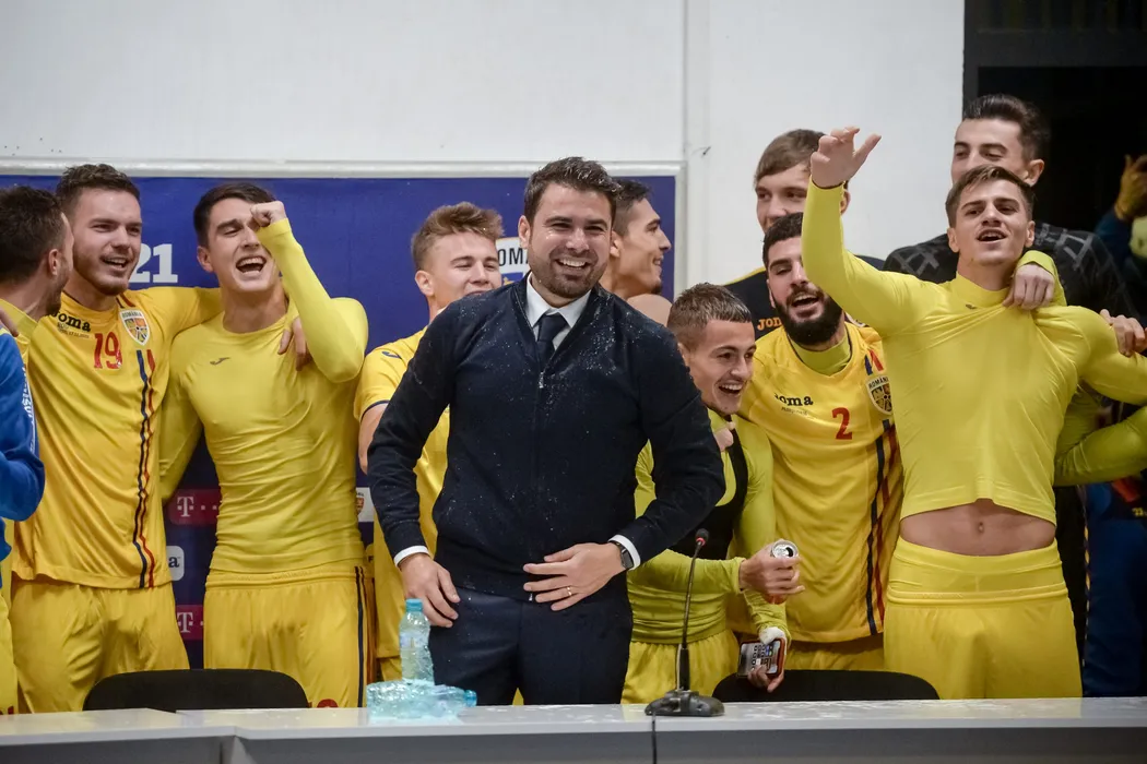 Jucatorii echipei Romania U21 reactioneaza la finalul meciului contra echipei Danemarca U21 din preliminariile pentru EURO U21, disputat pe stadionul Ilie Oana din Ploiesti, marti, 17 noiembrie 2020. Nationala Under 21 s-a calificat la Campionatul European, dupa ce a remizat cu Danemarca, scor 1-1, in ultimul meci al preliminariilor. Turneul final din 2021 se va desfasura in Slovenia si Ungaria. ALEXANDRU DOBRE / MEDIAFAX FOTO