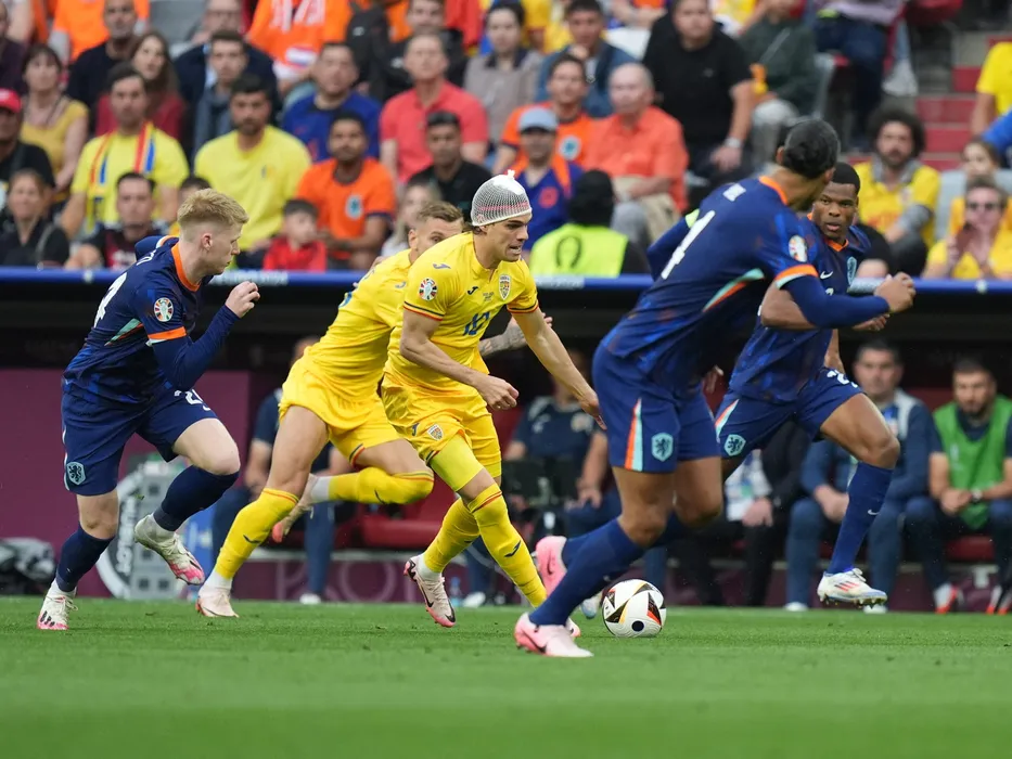 MUNICH, GERMANY - JULY 02: Ianis Hagi (C) of Romania in action during the UEFA EURO 2024 round of 16 match between Romania and Netherlands at the Munich Football Arena in Munich, Germany on July 02, 2024. Mahmut Serdar Alakus / Anadolu/ABACAPRESS.COM
