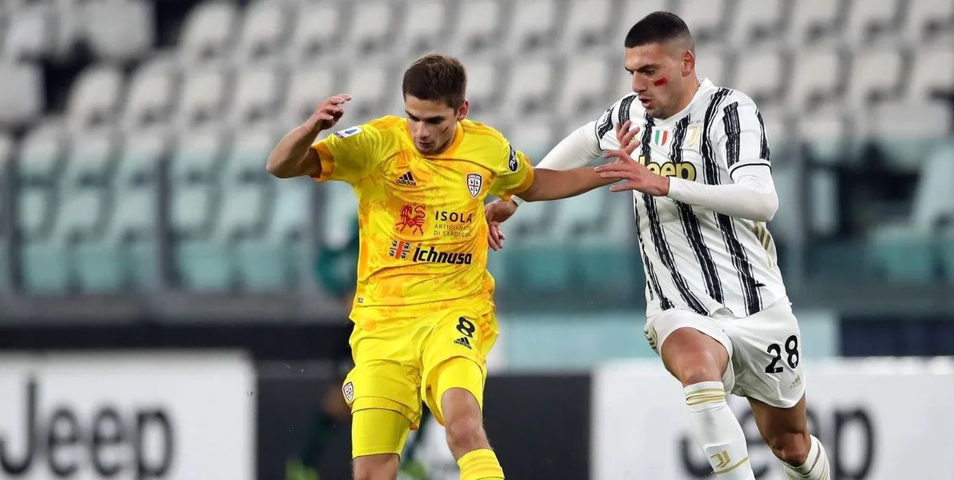 November 21, 2020, Turin, United Kingdom: Razvan Marin of Cagliari holds off the challenge from Merih Demiral of Juventus during the Serie A match at Allianz Stadium, Turin. Picture date: 21st November 2020. Picture credit should read: Jonathan Moscrop/Sportimage,Image: 570256678, License: Rights-managed, Restrictions: , Model Release: no