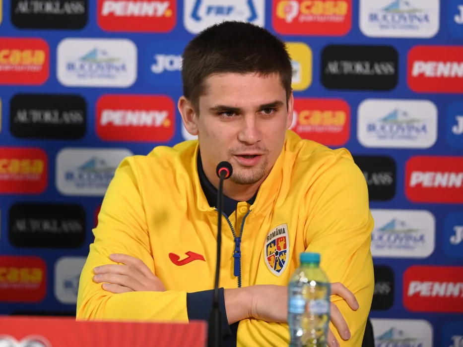 Razvan Marin la conferinta de presa a Romaniei de dinaintea meciului impotriva Belarus, din cadrul preliminariilor Campionatului European 2024, desfasurata la Centrul National de Fotbal de la Buftea, luni 27 martie 2023. © FOTO:Razvan Pasarica/SPORT PICTURES