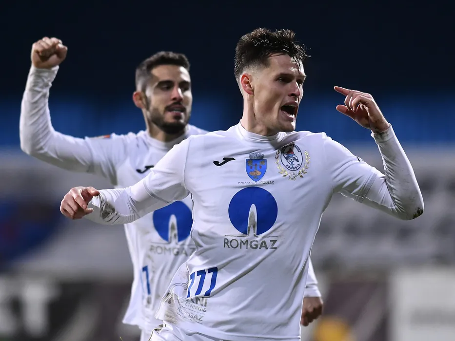 Ondrej Baco se bucura dupa un gol marcat in meciul de fotbal dintre Gaz Metan Medias si Viitorul Constanta, contand pentru Liga 1 Casa Pariurilor, desfasurat fara spectatori pe Stadionul Municipal din Medias, sambata 19 decembrie 2020. © FOTO:Razvan Pasarica/SPORT PICTURES