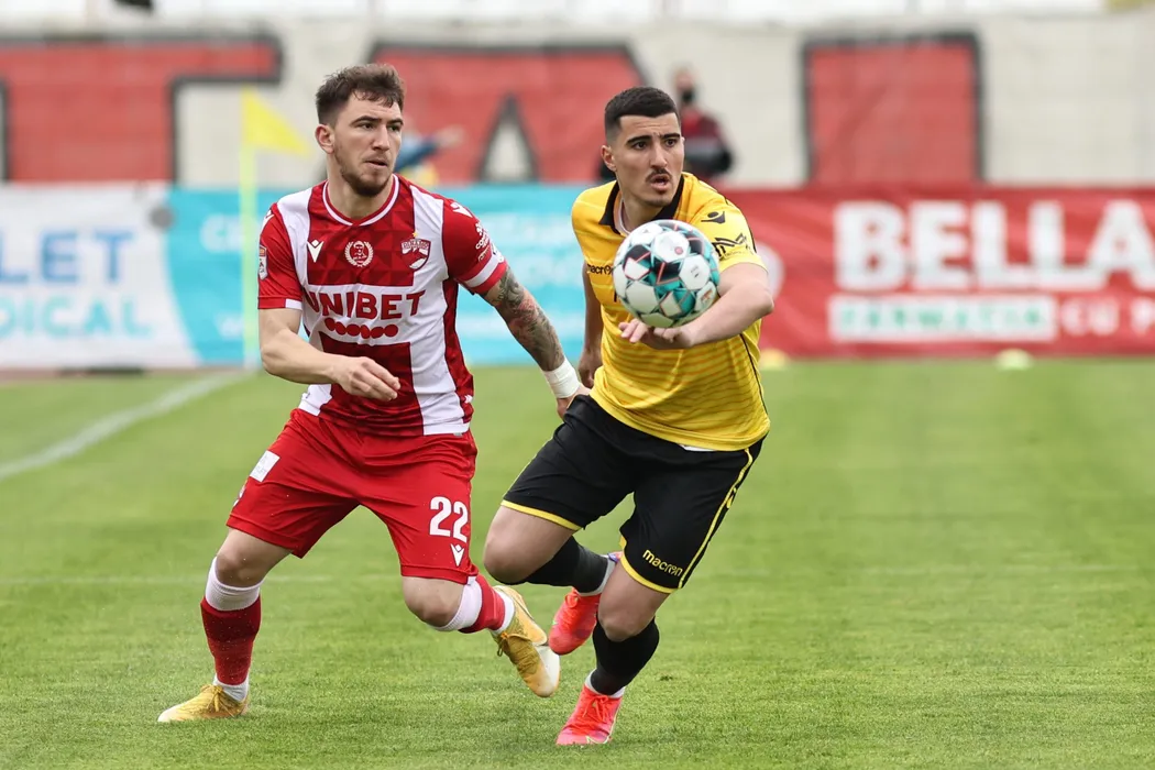 Echipele Dinamo (echipament alb-rosu) si FC Voluntari s-au intalnit intr-o partida disputata in etapa cu numarul 4 din play-out-ul Ligii 1 la fotbal, joi, 29 aprilie 2021, in Bucuresti. GEORGE FLUSTER / MEDIAFAX FOTO