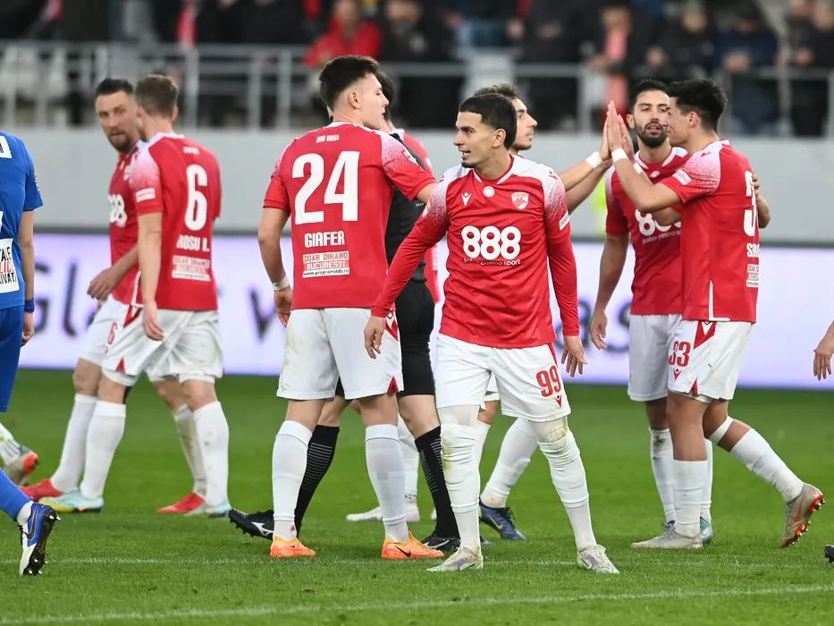 Bucurie a fotbalistilor dinamovisti dupa un gol marcat cu Deniz Giafer, Lamine Ghezali, Daniel Gago Iglesias si Alin Serban in meciul de fotbal dintre Dinamo Bucuresti si Unirea Constanta, contand pentru Liga 2, desfasurat pe Stadionul National Arcul de Triumf din Bucuresti, luni 27 februarie 2023. © FOTO:Razvan Pasarica/SPORT PICTURES