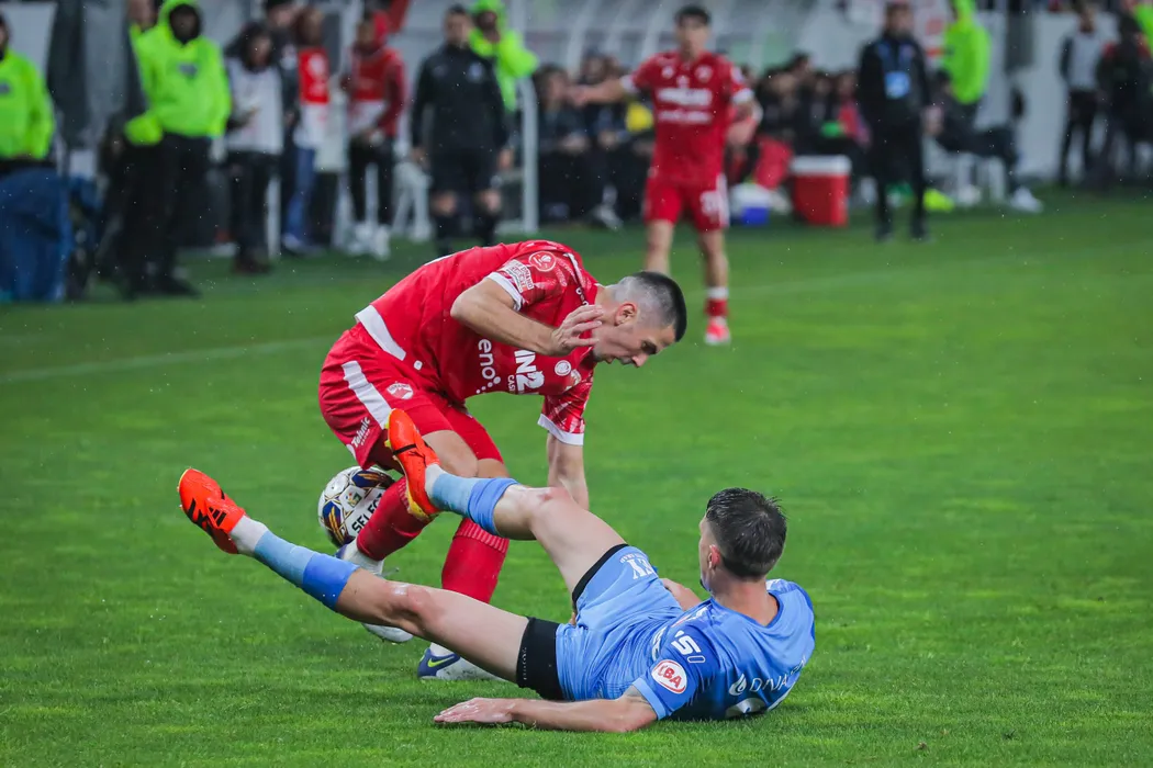 Tiberiu Ionuț Căpușă și Domagoj Pavicic in meciul de fotbal dintre Dinamo Bucuresti si UTA Arad, din cadrul Play out-ului Superligii Superbet, desfasurat pe Stadionul National Arcul de Triumf din Bucuresti, duminica 12 mai 2024. © FOTO:Antonio Vasile/SPORT PICTURES