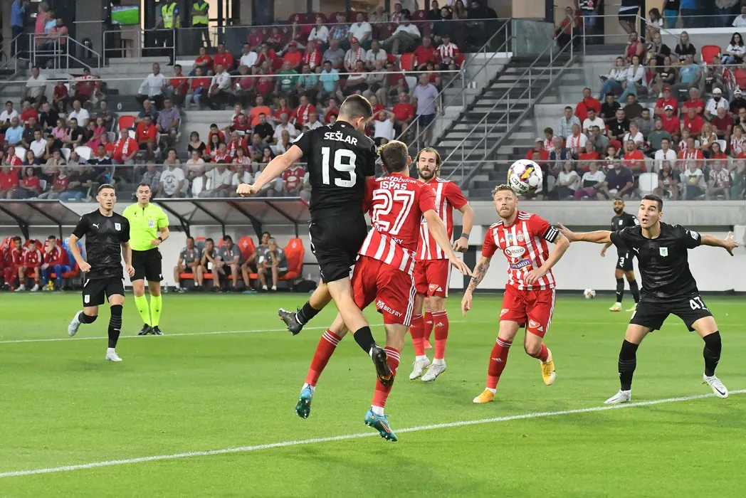 Meciul de fotbal dintre Sepsi OSK Sfantu Gheorghe si Olimpija Ljubljana, contand pentru turul 2 preliminar al Conference League, desfasurat pe Stadionul Sepsi din Sfantu Gheorghe, joi 21 iulie 2022. © FOTO:Bogdan Balas/SPORT PICTURES