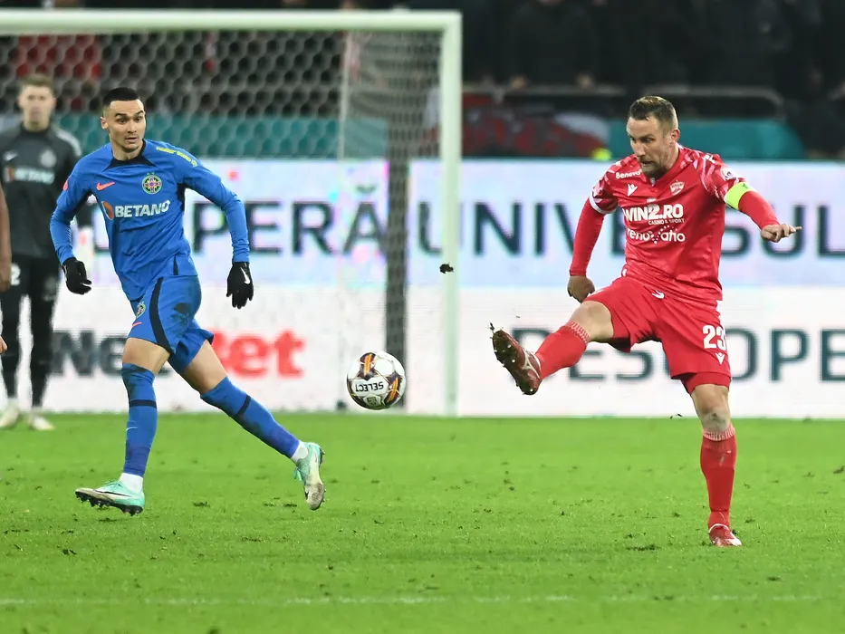 Adrian Gheorghe Sut si Razvan Bogdan Patriche Nichita in meciul de fotbal dintre Dinamo Bucuresti si FCSB, din cadrul Superligii Superbet, desfasurat pe Arena Nationala din Bucuresti, duminica 26 noiembrie 2023. © FOTO:Razvan Pasarica/SPORT PICTURES