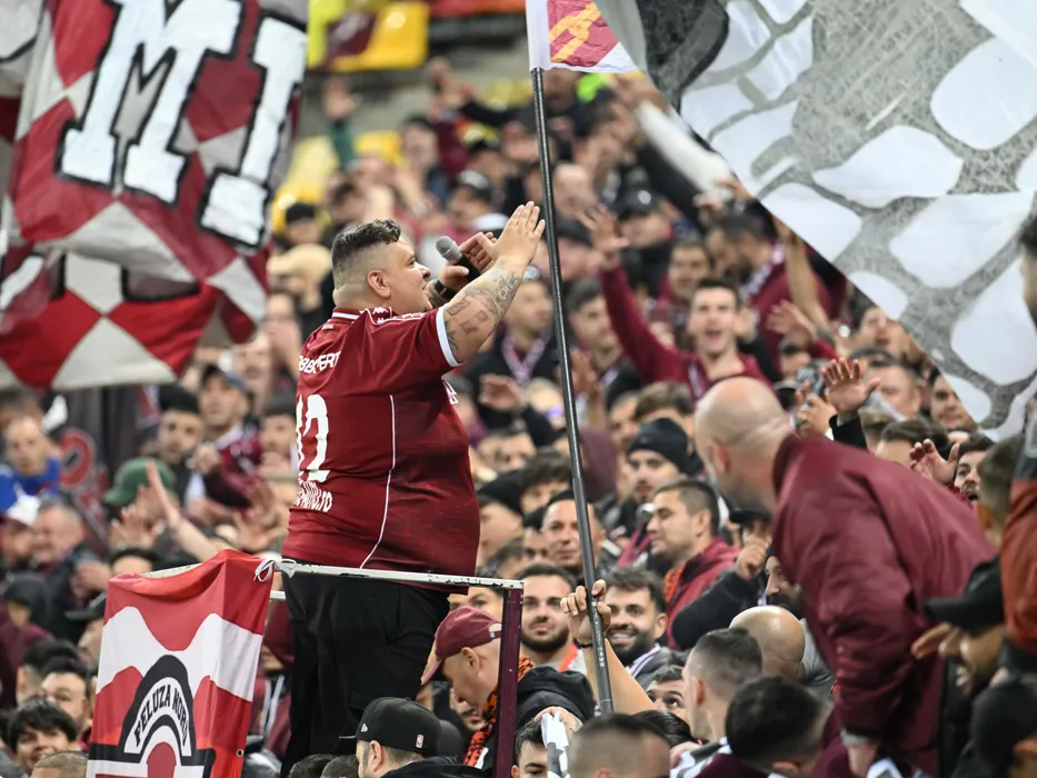 Liviu Ungurean, alias Bocciu conduce galeria rapidista la meciul de fotbal dintre Dinamo Bucuresti si Rapid Bucuresti, din cadrul Superligii Superbet, desfasurat pe Arena Nationala din Bucuresti, duminica 19 octombrie 2025. © FOTO:Razvan Pasarica/SPORT PICTURES