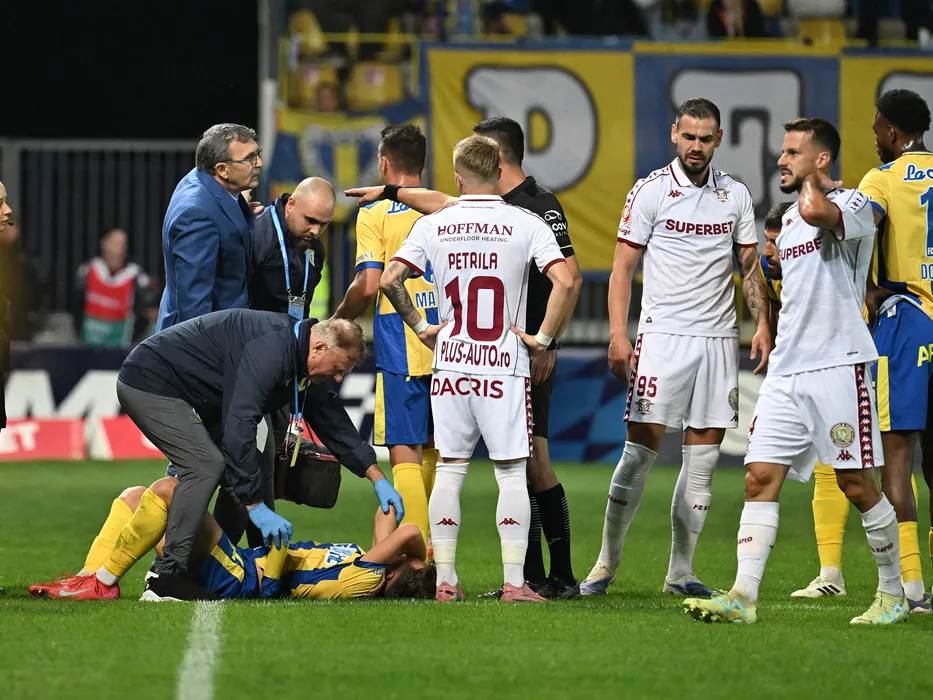 Denis Razvan Radu, Eugen Neagoe, Elvir Koljic si Jakub Hromada in meciul dintre Petrolul Ploiesti si Rapid Bucuresti, contand pentru Superliga Superbet, desfasurat pe Stadionul Ilie Oana din Ploiesti, sambata 27 septembrie 2025. © FOTO:Razvan Pasarica/SPORT PICTURES