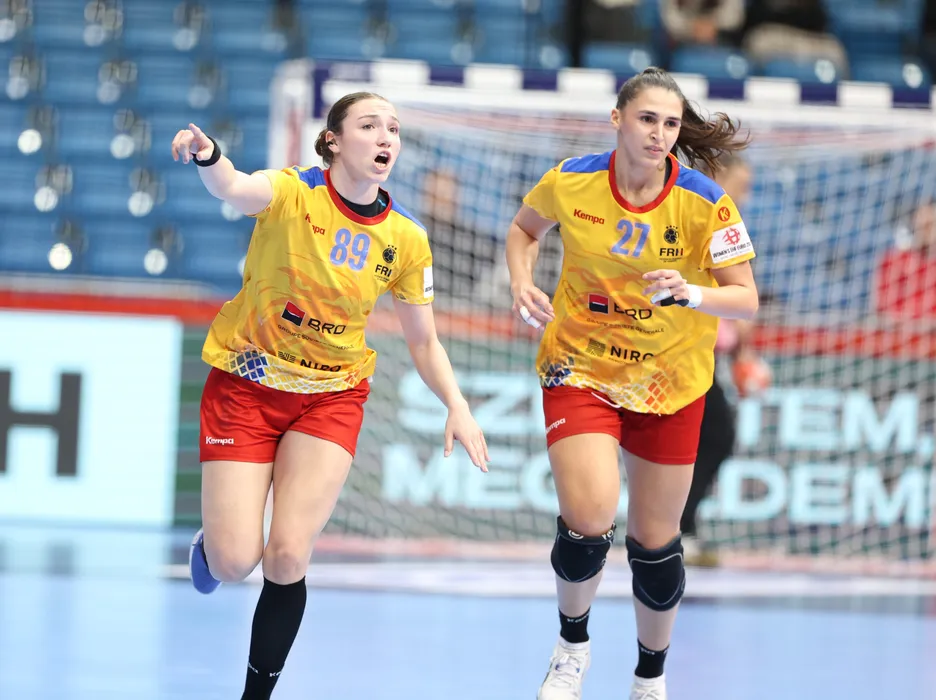Corina Elena Romina Lupei și Lorena-Gabriela Ostase în meciul de handbal dintre Franța și România, contând pentru EHF EURO 2024, desfășurat in Sala Sporturilor Fönix Csarnok din Debrecen, joi 5 decembrie 2024. © FOTO: Sorin PANĂ/SPORT PICTURES