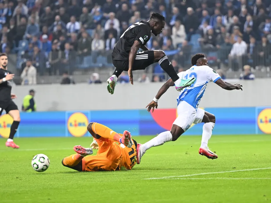 Eric Boakye, Timothy Fayulu si Bassey Etim Monday in meciul dintre Universitatea Craiova si FC Noah Yerevan, contand pentru UEFA Conference League, desfasurat pe Stadionul Ion Oblemenco din Craiova, joi 23 octombrie 2025. © FOTO:Razvan Pasarica/SPORT PICTURES