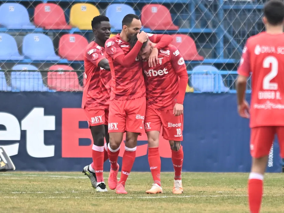 Bucurie a fotbalistilor aradeni Eric Johana Omondi, Marcelo De Freitas Costa si Andrej Fabry dupa un gol marcat în meciul de fotbal dintre FC Voluntari si UTA Arad, contând pentru Superliga Superbet, desfășurat pe Stadionul Anghel Iordanescu din Voluntari, sambata 17 februarie 2024. © FOTO: Răzvan PĂSĂRICĂ/SPORT PICTURES