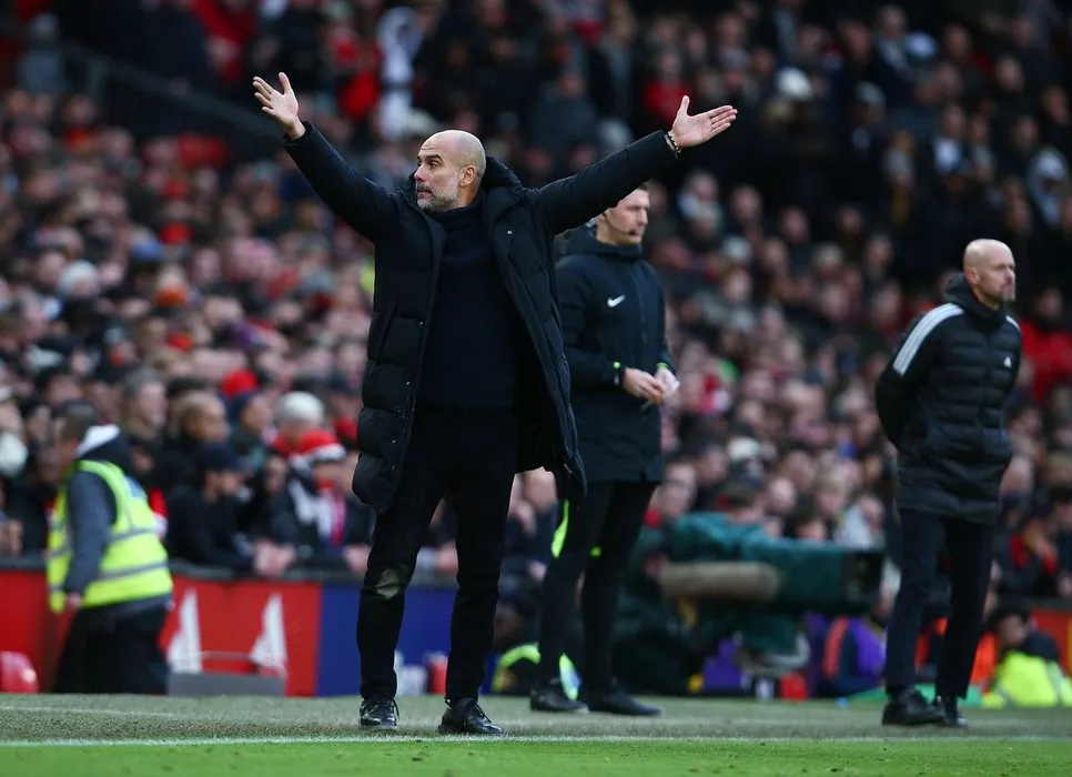 Manchester City manager Pep Guardiola reacts
