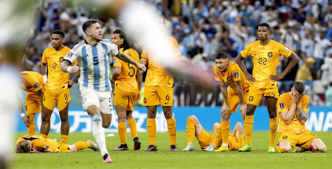 Noa Lang of Holland, Frenkie de Jong of Holland, Jurrien Timber of Holland, Nathan Ake of Holland, Virgil van Dijk of Holland, Teun Koopmeiners of Holland, Steven Berghuis of Holland, Denzel Dumfries of Holland and Wout Weghorst of Holland after the FIFA World Cup Qatar 2022 quarterfinal match between the Netherlands and Argentina at the Lusail Stadium on December 9, 2022 in Al Daay Yen, Qatar. ANP KOEN VAN WEEL