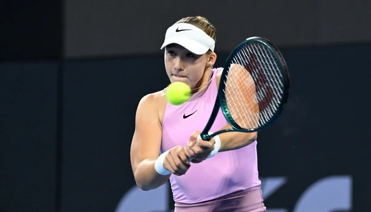 04 January 2025, Australia, Brisbane: Russian tennis player Mirra Andreeva hits a forehand return against Belarus' Aryna Sabalenka during their women's singles semifinal tennis match at the Brisbane International tennis tournament. Photo: Darren England/AAP/dpa