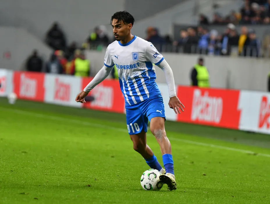 Stefan Baiaram in meciul de fotbal dintre Universitatea Craiova si FSV Mainz 05, contand pentru Conference League, desfasurat pe Stadionul Ion Oblemenco din Craiova, joi 27 noiembrie 2025. © FOTO:Daniel George Ilinca/SPORT PICTURES