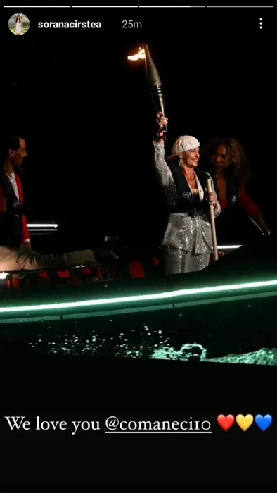 Reacția Soranei Cîrstea când a văzut-o pe Nadia Comăneci în barca legendelor care au purtat torța la ceremonia de deschidere a Jocurilor Olimpice de la Paris 2024