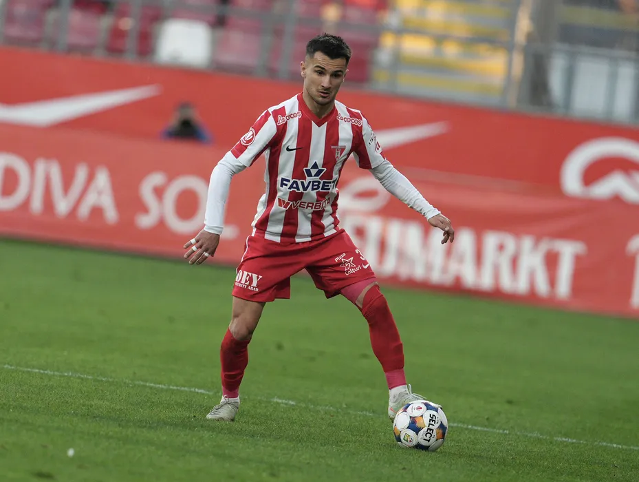 Din Alomerovic in meciul de fotbal dintre UTA Arad si AFC Hermannstadt Sibiu, contand pentru Superliga Superbet Play-Out, desfasurat pe Arena Francisc Neuman din Arad, vineri 13 martie 2026. © FOTO:Alexandra Fechete/SPORT PICTURES